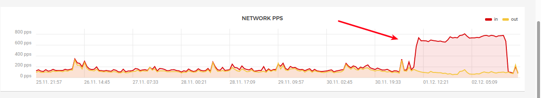Le pourquoi a été détecté, il y avait une attaque extérieur / sollicitation extrême pour faire tomber le serveur (voir graphique ci-joint)