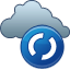 L’icône bleue avec les deux arcs de cercle blancs indique que la synchronisation est en cours.