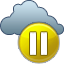 L’icône jaune avec les deux lignes parallèles indique que la synchronisation est suspendue (très vraisemblablement par vous-même)